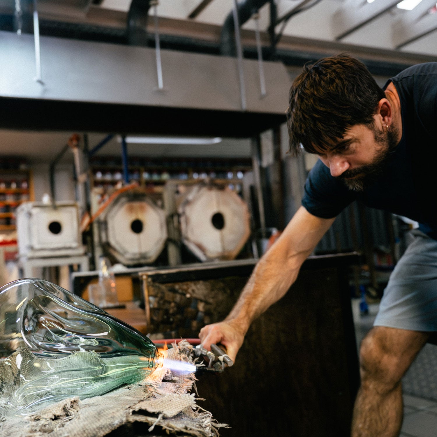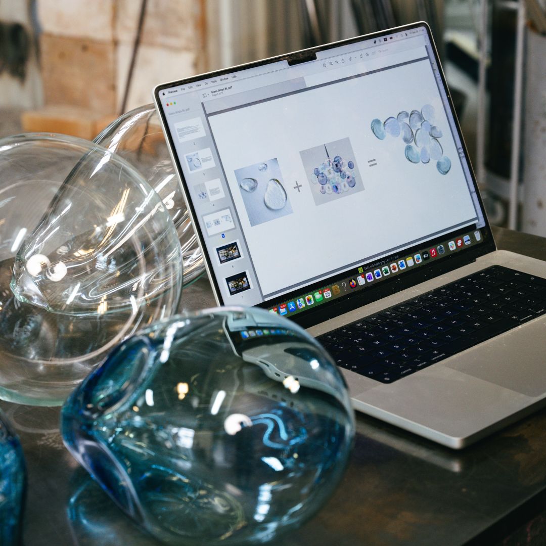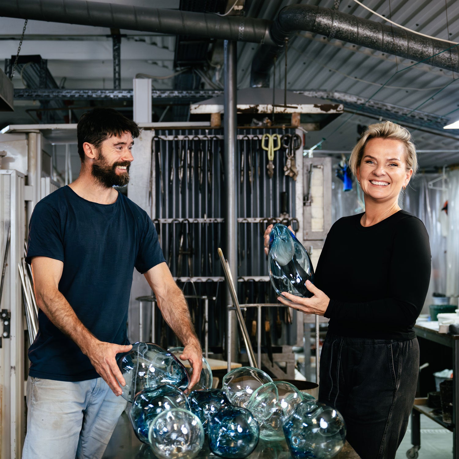 Ég er sjálf ekki glerblásari þannig að ég þurfti að finna einhvern mjög góðan og vanan blásara. Hann fann ég í Anders Vange, sem er stofnandi Reykjavík Glass. Ég ber ómælda virðingu fyrir handverkinu og hæfileikunum sem liggja að baki þessari merkilegu tækni, þetta eru beinlínis töframenn og án góðs samstarfsfólks hefðu droparnir aldrei orðið til.