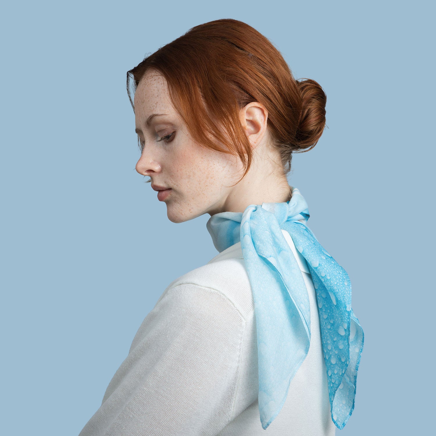 Klútur úr silkiblöndu (60x60cm) innblásin af töfrandi vatni Bláa Lónsins gerir gjöfina einstaka og eftirminnilega.