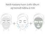 Notaðu maskana hvorn á eftir öðrum eða báða maska samtímis á mismunandi svæði andlitsins. Mælt er með að nota Silica Mud Mask á höku, nef, í kringum munn og kjálka til að djúphreinsa og styrkja húðina. Notið Algae Mask á enni og kinnar til að næra húðina og veita henni sléttara og ljómameira yfirbragð.