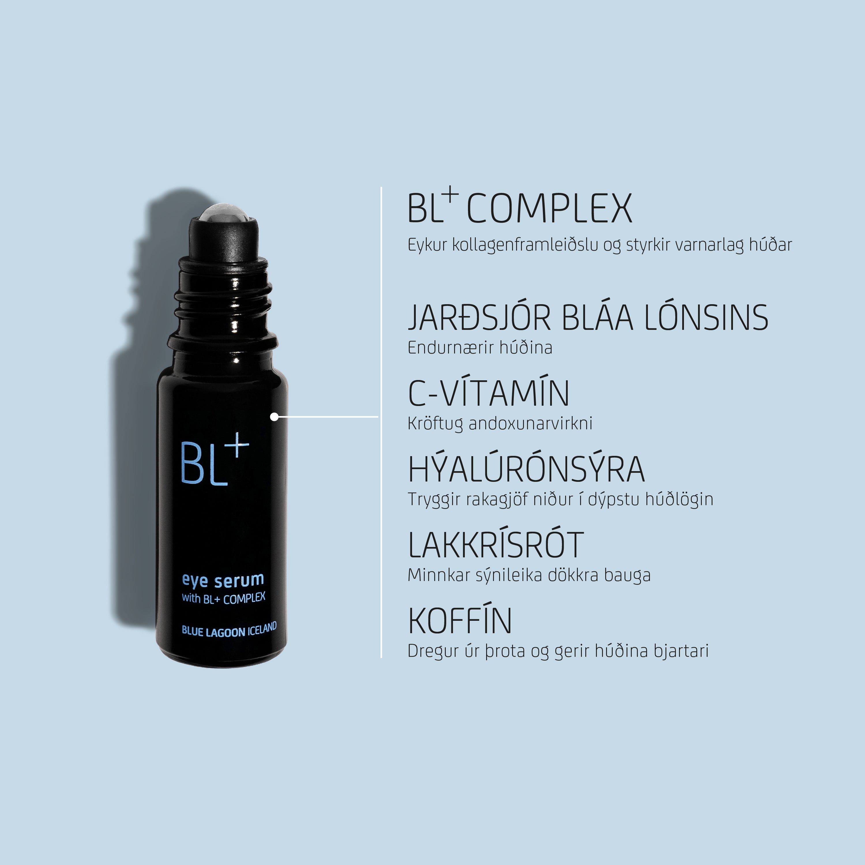 - Ráð: Notaðu BL+ Eye Serum yfir daginn til að fríska upp á þreytt augnsvæðið eða draga úr þrota.